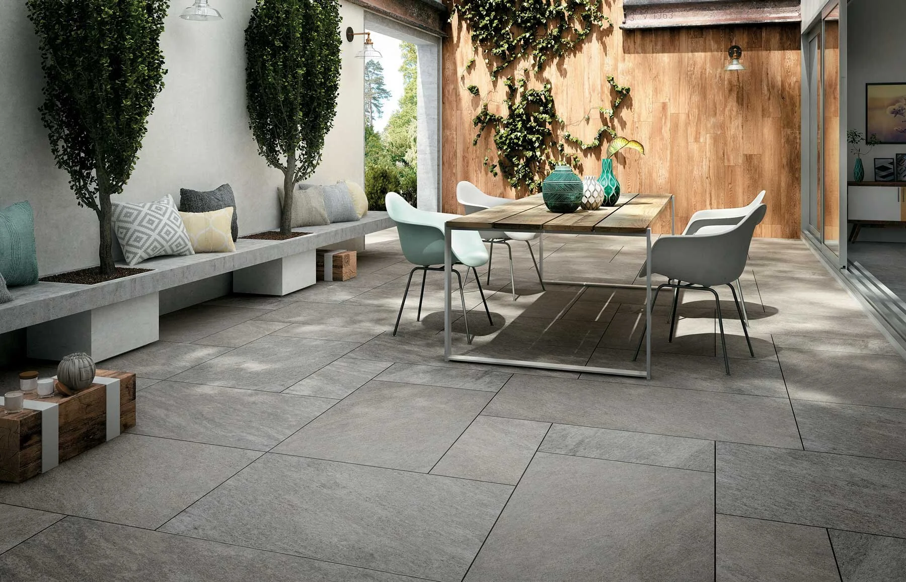 Inspired by natural quartzite, Quarziti delivers the organic variation, layered texture, and tonal richness of real stone with the superior durability of Italian porcelain. Its elevated performance and refined colour palette make it a versatile solution for a seamless indoor-outdoor aesthetic.